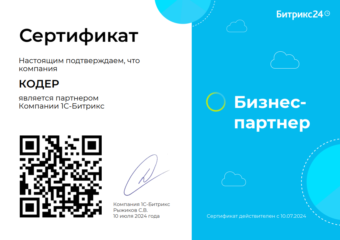Мы - Кодер, студия автоматизации и развития бизнеса. Нам покоряется Битрикс24, интеграции с 1С, телефонией и сторонним ПО.